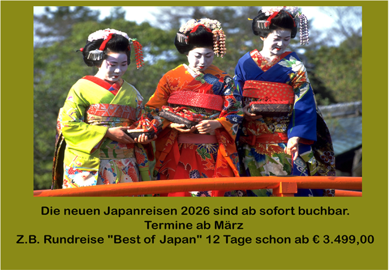 Besuchen Sie die „Burg des weißen Reihers“ in Himeji, die Stadt Hiroshima und die Insel Miyajima. Außerdem erwarten Sie ein Ausflug nach Nara und die historische Stadt Kyoto – optimal geplant für ein unvergessliches Japan-Erlebnis.